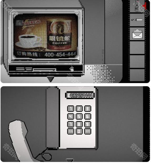 3、拨打咖啡广告里的电话,在隔壁的房间的桌子上开启快递盒获得咖啡。