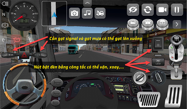 4、通过虚拟按键上下左右环顾四周,观察卡车周边环境。