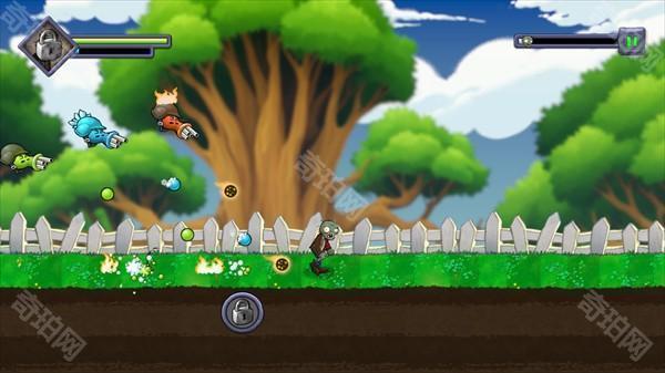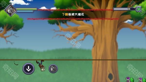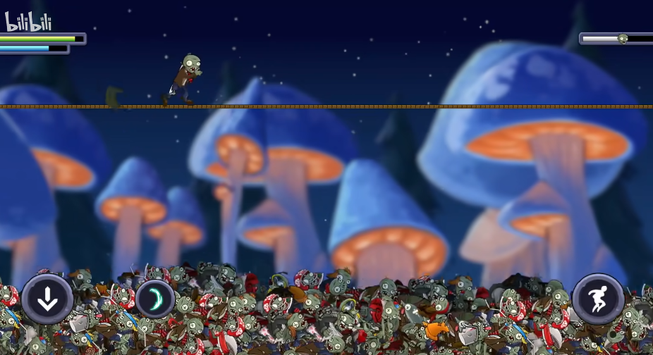 3、进入关卡后僵尸会自动前进,在屏幕左右的上下分别是跳跃和切换方向,有时向下的按键会变成冲刺。