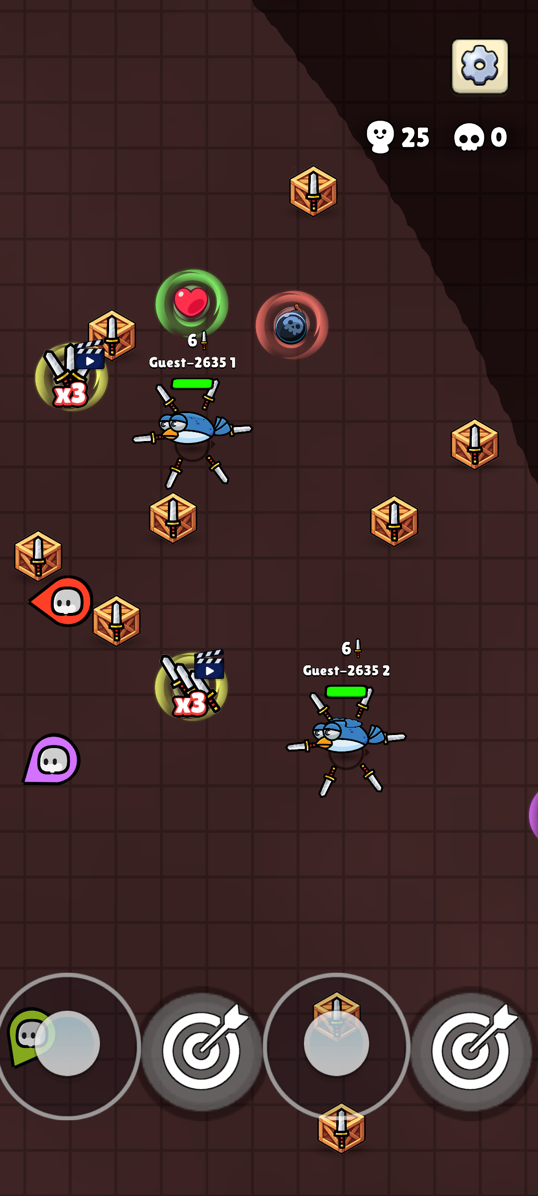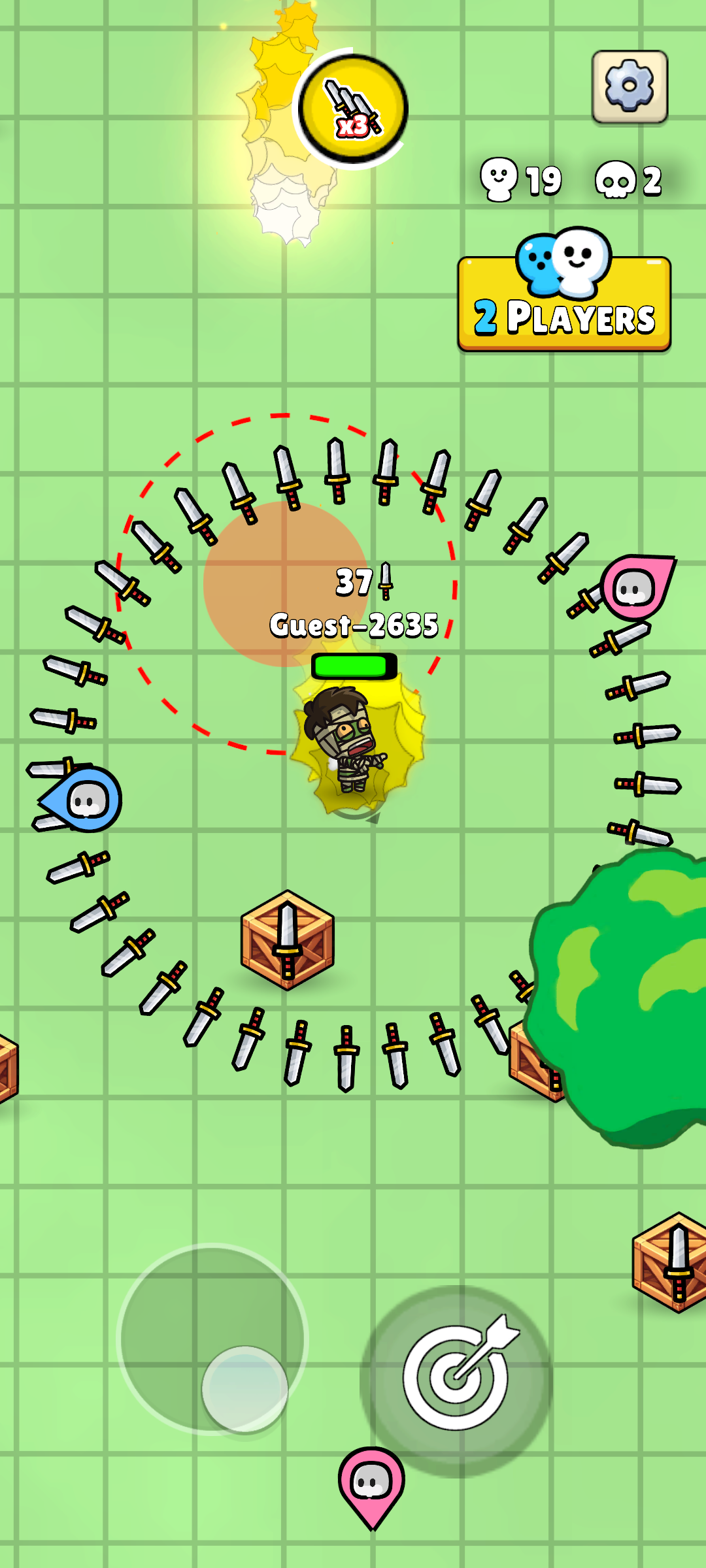 1、操控飞刀精准投掷向敌人,计算角度与力度,命中目标造成伤害。
