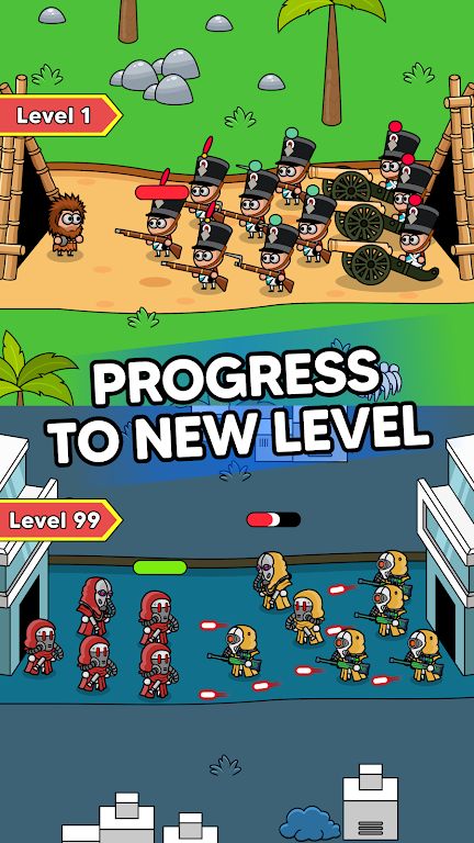 3、在每个时代,玩家都可以通过完成特定任务,解锁更强大的士兵和武器。