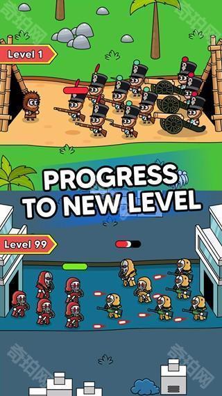 2、随着游戏进程的推进,玩家可以逐步升级士兵和建造防御设施,提升队伍的整体实力。