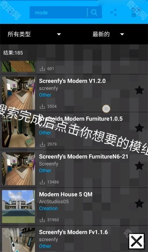 2、搜索完成后,在下拉的结果中,点击你想要的模组。