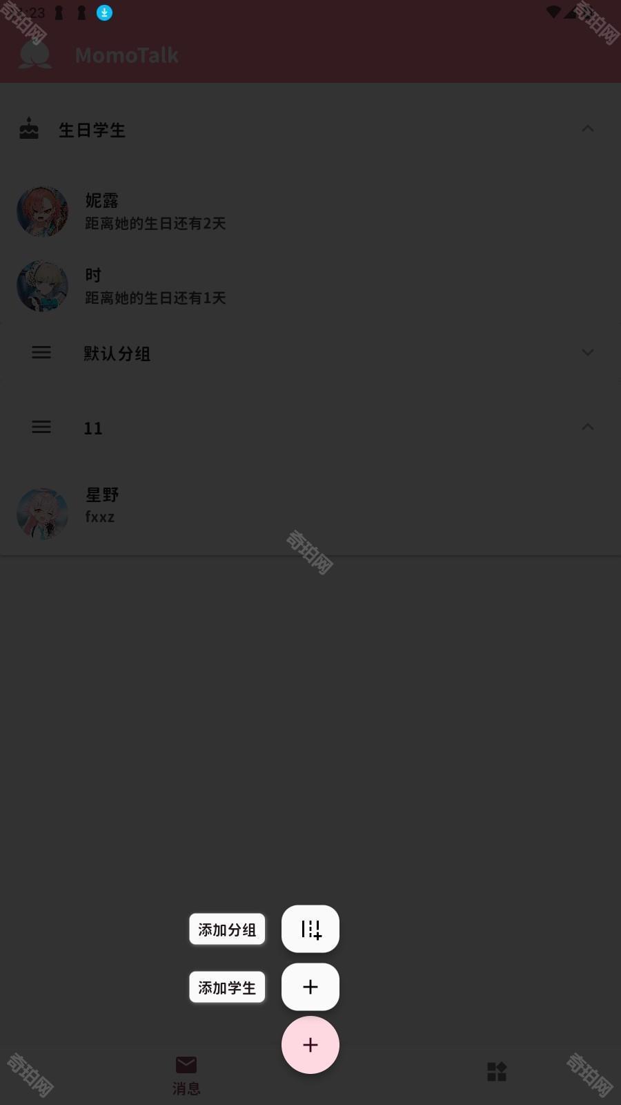 2、点击添加学生,进入后可以根据喜好选择学生。