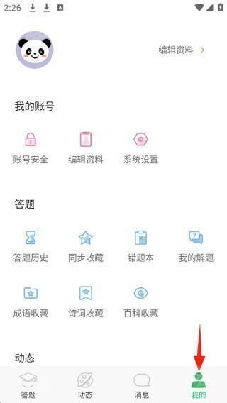 4、在“我的”栏目中,你可以对资料进行修改编辑,也可以查看你收藏的题目或者浏览答题历史。
