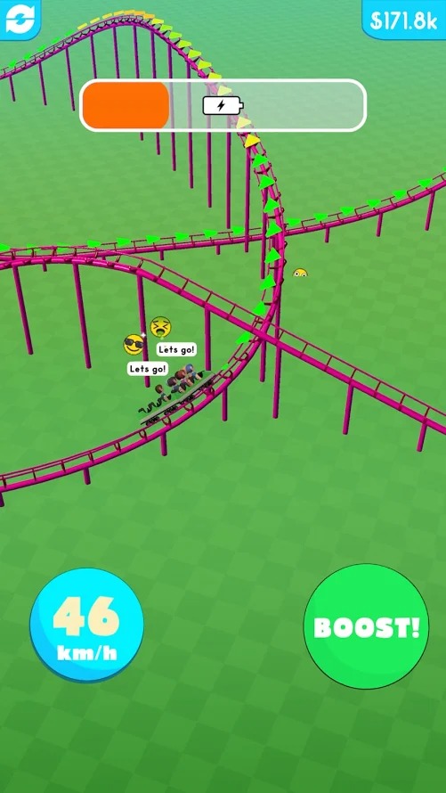 1、玩家可以自由选择过山车轨道、车辆和装饰,设计独特的过山车。