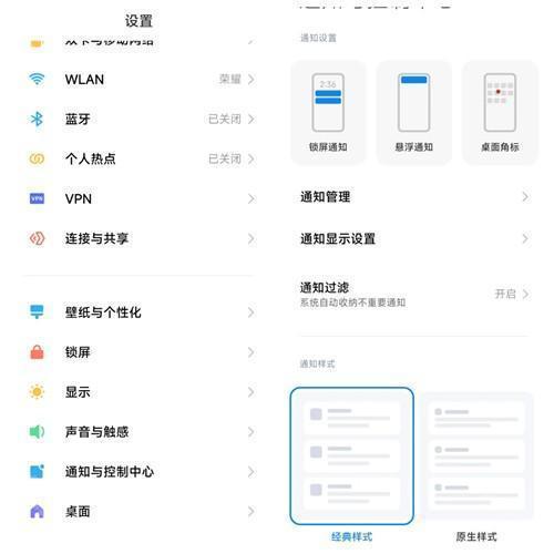 1、进入【通知与控制中心】-【通知显示设置】,切换为原生样式,方便后续操作。