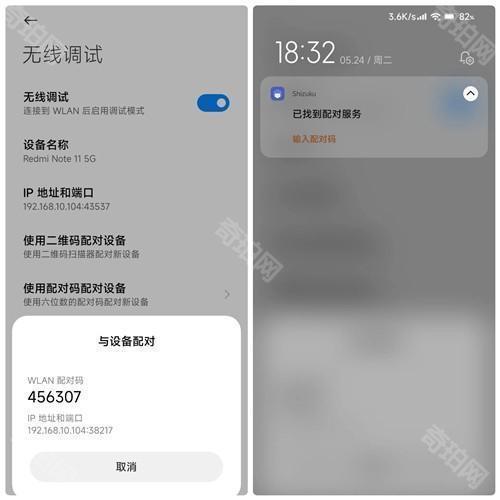 3、要记住WLAN配对码这串数字,下拉通知栏,显示已找到配对服务,下面输入WLAN配对码这串数字。