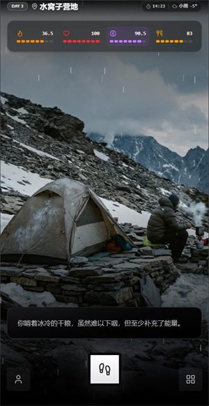 《赛博徒步之生死鳌太线游戏》是里的玩法虽然比较简单,但是还是有一定难度的,首先玩家需要克服的就是在有限的资金内购入合适的装备和物资补给。其次是需要合理评估自己在徒步前进时生理体征,要让自己时刻保持一个健康的状态,同时还要注意途中发生的各种事件,做出你的选择克服困难穿越鳌太线。