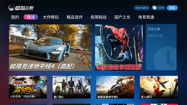 蘑菇云游tv版是一款功能全面的云游戏软件。平台上有着非常丰富的游戏内容,可以帮您在手机上轻松畅玩各类端游3A大作。不管是动作、冒险还是角色扮演,各类游戏应有尽有,让您查找起来十分方便。支持手机游戏空闲功能,全天在云端自动运行,无需您手动操作,有效为您节省时间。应用支持多种终端设备,切换设备数据也会实时保存,带来更加便利的游戏体验。感兴趣的小伙伴快来本站下载试试吧。