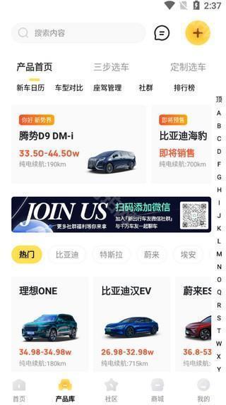 4、新能源产品库提供新出行站点的内容分类,精选的新能源车库,已经经过精心挑选的热门车型,让您用最快的方式找到最火热的电动车,相见不再恨晚!