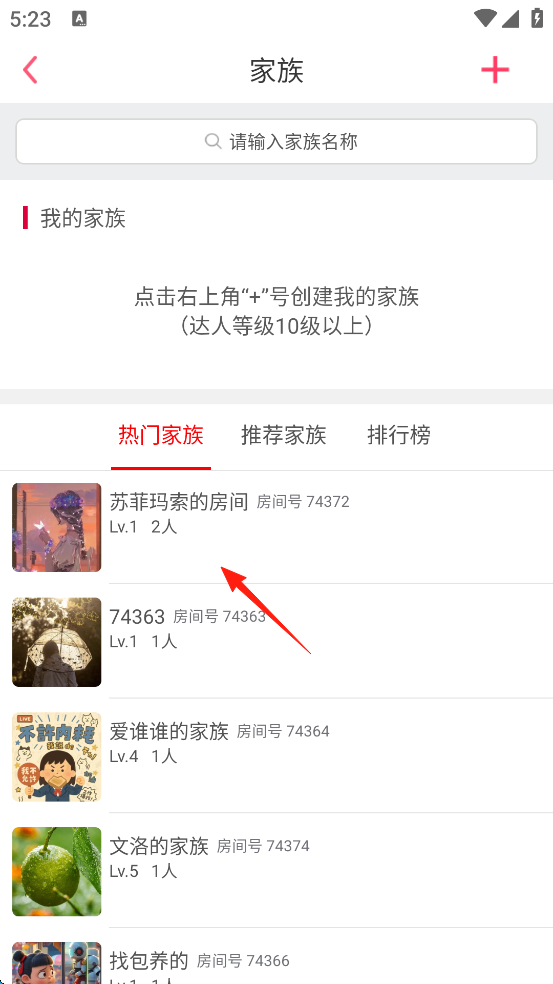 3、直接点击自己想进入的家族。