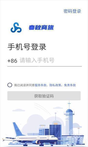 1、在本站下载好春秋商旅app后,打开软件,进入到登录界面。
