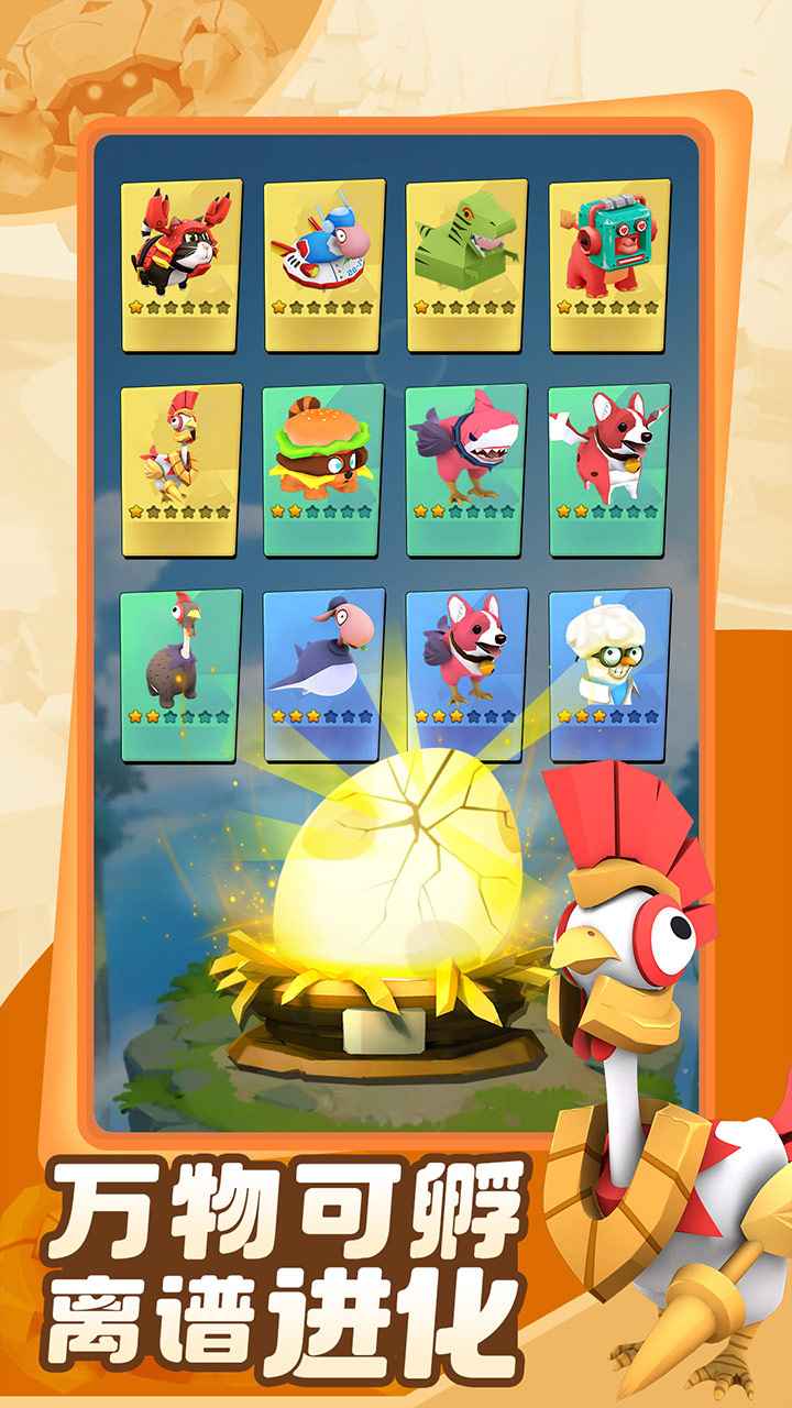 5、通过战斗,玩家可以升级自己的小鸡,将它们变成昆昆,最终达到人与坤坤合一的状态。