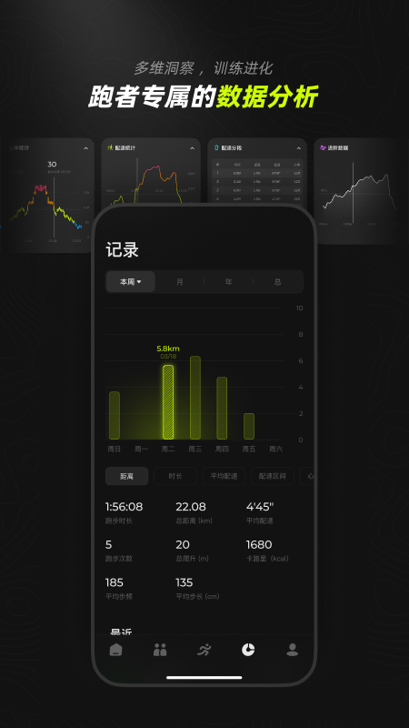 4、专业数据记录:提供详细的跑步数据记录和分析,帮助用户全面了解自己的跑步表现。
