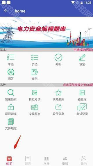 4、就会跳转到练习中,在这里可以选择单选、多选、判断、填空等练习。