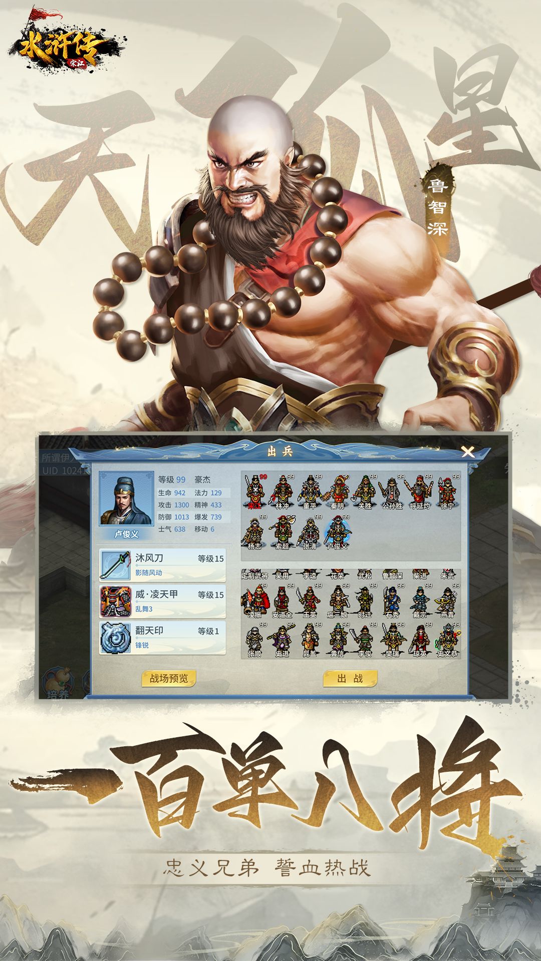 水浒宋江传是一款以水浒传为背景的策略性战争游戏,它不仅重现了经典历史故事,还通过精美的画面和丰富的剧情为玩家打造了一个沉浸式的国风世界,还精心设计的画面和细腻的人物刻画让人仿佛置身于一个栩栩如生的古代战场之中,它的核心体验在于其策略性的战斗系统,玩家需要合理布局并利用各种战术才能取得胜利。