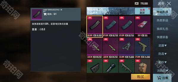 6、在地铁逃生模式内开始游戏之前,我们需要去黑市补充物资,需要购买的物资包括武器、防具、配件以及消耗品。
