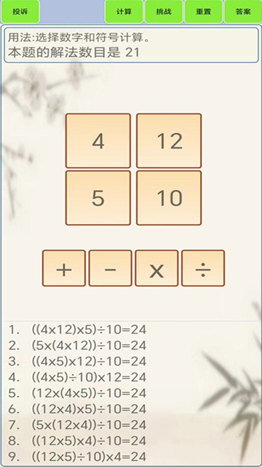 3、软件可以计算出所有可能的解法,帮助用户全面了解24点问题的解题思路。