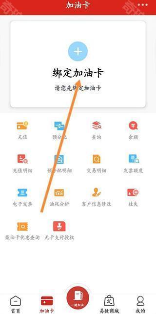 2、如果没有绑定油卡,则需要点击上面的绑定加油卡。