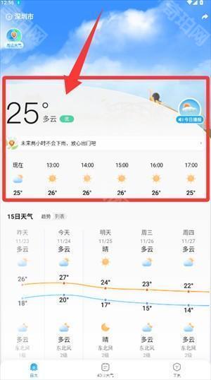 3、查看逐小时级天气预报,每小时一次天气预报,结果更精细。