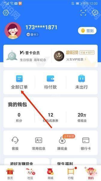 1、在我的界面选择“全部订单”选项。