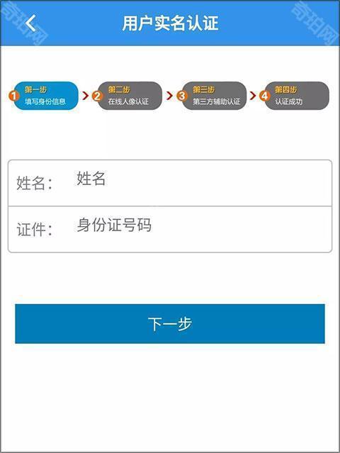 4、确认后进入“在线人像认证”功能,按照语音提示作出相应动作,通过实名认证。如活体人像比对认证无法正常通过,可进入“第三方辅助认证”页面填写自己名下已开通网银功能的银行卡号(借记卡、信用卡),且该银行卡预留的手机号与平台注册手机号一致,即可认证成功。