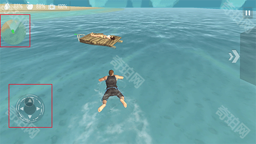 1、进入游戏后,男人在海里发现一个女人,这时你需要点击通过点击左下角会出现一个控制方向的转盘,点击地图的位置并控制方向盘进行移动,游到女人的身边,靠近那根绳子,就会自动绑在男人的身上,将女人带到岸上。