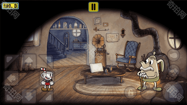 1、复古风格,上世纪30年代动画片般的游戏画面。