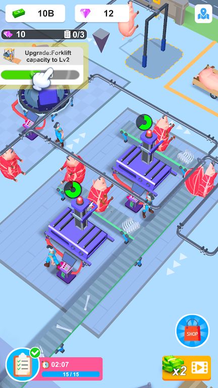 肉类工厂经理是一款极致休闲的放置游戏,你将掌管一个食品加工帝国。你将把牲畜赶到屠宰场,在那里进行加工和储存,然后由卡车运输,你将亲眼目睹动物被剥皮机剥皮,并送入分离机进行精准切割。剩余的肉块被送往碎肉区,而剩余的肉块则在烧烤区烹制至完美,转化为利润丰厚的肉制品,扩大工厂规模,优化生产,满足全球对优质肉类的渴望,成为肉类行业的巨头,感兴趣的玩家欢迎快来本站下载体验。