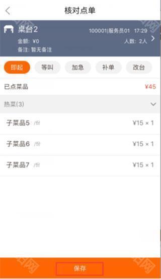 2、核对点单页面的下单改成保存。
