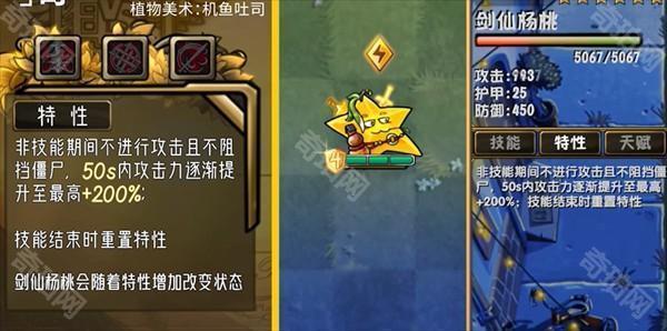 特点:非技能期间不攻击、不阻挡僵尸;50 秒内攻击力逐渐提升至 + 200%。