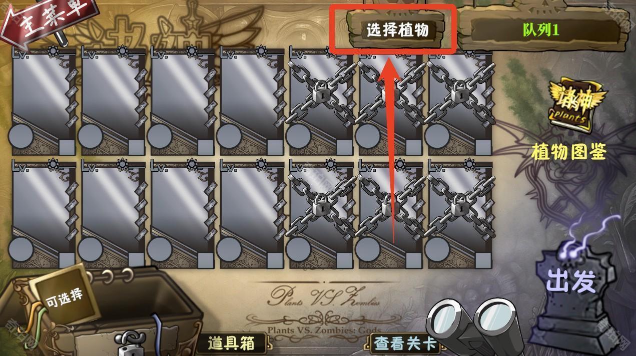 ①点击顶部【选择植物】按钮,即可从列表中挑选你想要带入关卡的植物。
