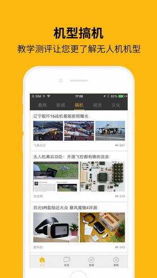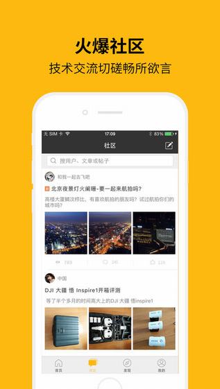 2、无人机技术切磋知识交流,无人机飞友飞行经验、航拍拍摄经验、无人机维护维修、飞行心得等海量精华帖为您推荐。