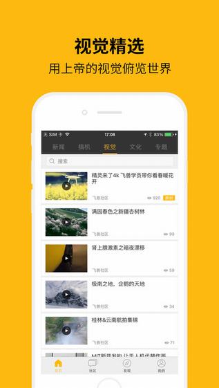 飞兽社区是一款功能全面的航拍分享软件。应用上有着非常专业的各种团队,提供详细的无人机精品教程。各种新闻实时更新,带给您更多精彩体验。此外,还有各种国内外的航展、现场试飞等资讯会实时更新,让您不错过任何精彩内容。