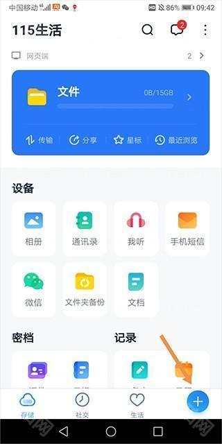 1、登录应用后进入到存储页面下点击上方的文件图标。