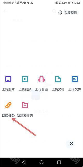 5、如果用户需要启动下载torrent文件格式种子文件,目前手机版暂时不支持,但是用户可以在网页端使用手机端115网盘app扫码登录,然后点击【上传】按钮后在下拉选项中点击【链接任务】。