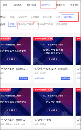 3、或者登入www.lgb360.com点击课程中心-执业考试-注册安全工程师中查看和购买。