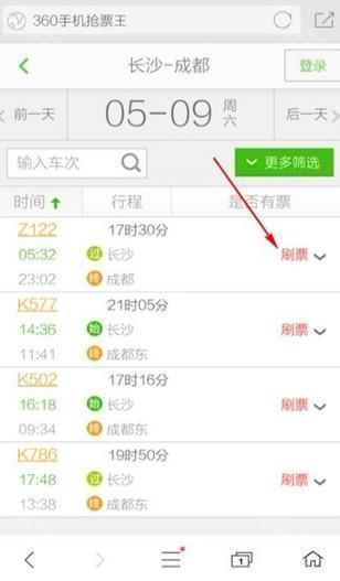 5、登录后出现列车信息,选择需要乘坐的点击【刷票】。