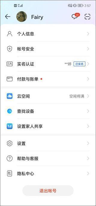 3、往下滑动,先退出当前账号。