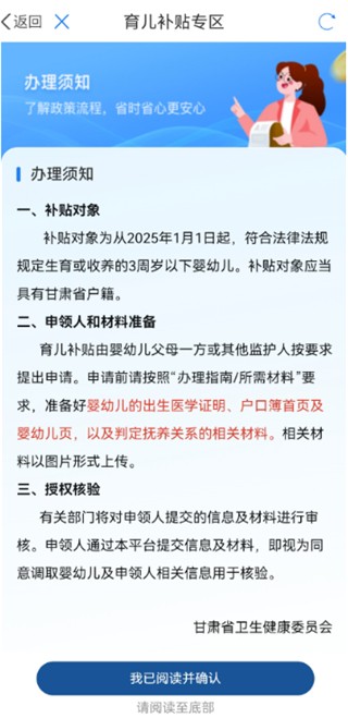 1、选择“甘肃省省本级”,下拉即可看到育儿补贴专区。