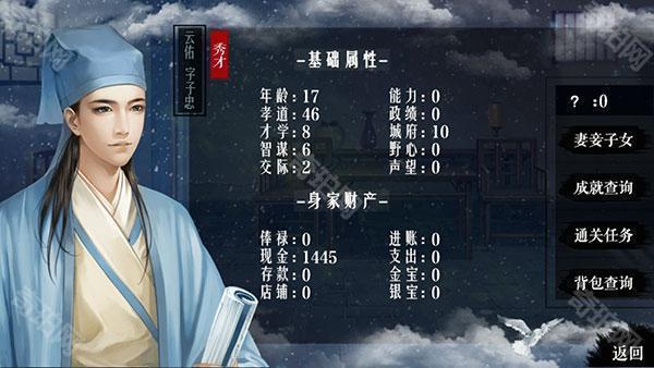 4、属性查询中可以看到主角目前的各项属性、家庭成员、成就、任务等。