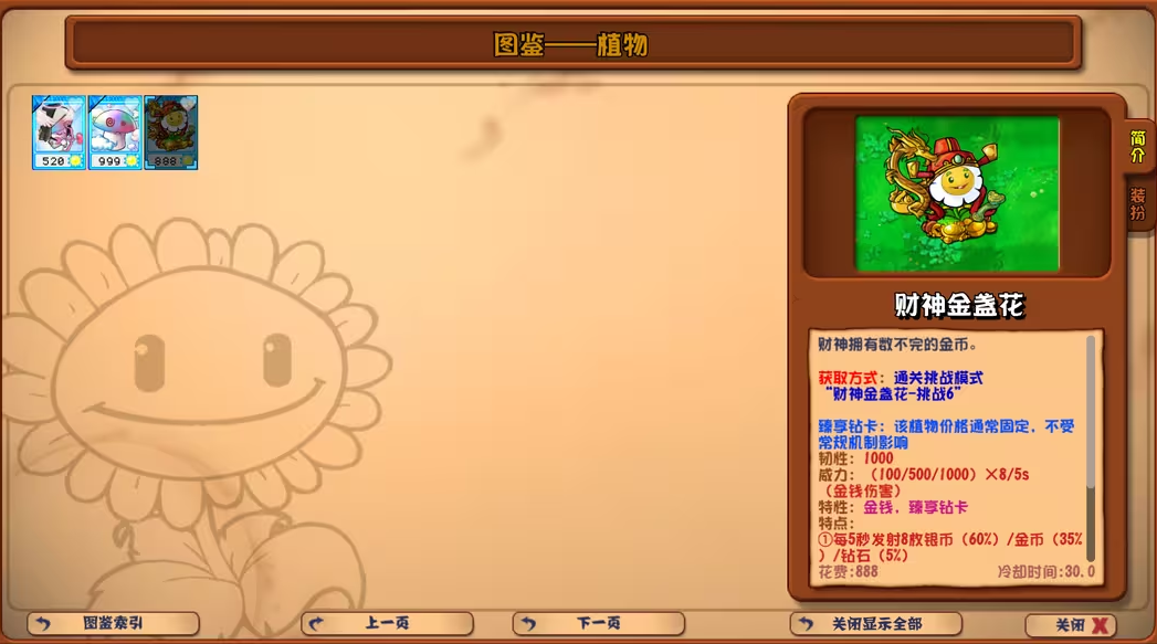 挑战模式(钻卡挑战)--财神金盏花挑战1~6