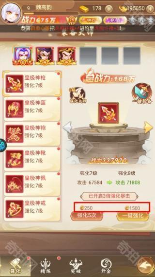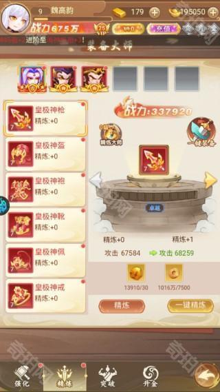 2、精炼——使用精炼石与铜钱,提升装备的精炼等级;