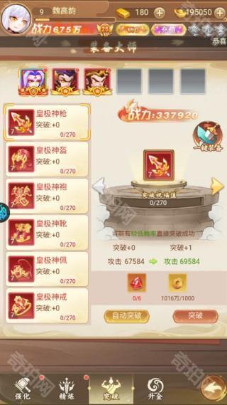 3、突破——使用突破石与铜钱进行装备破图,大幅提升装备属性;